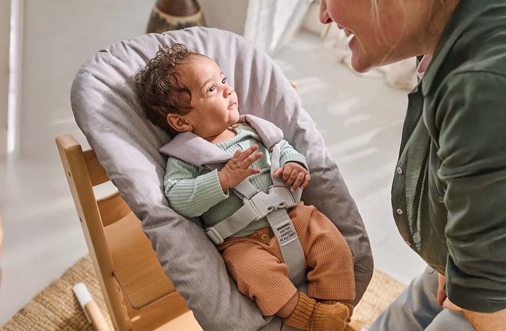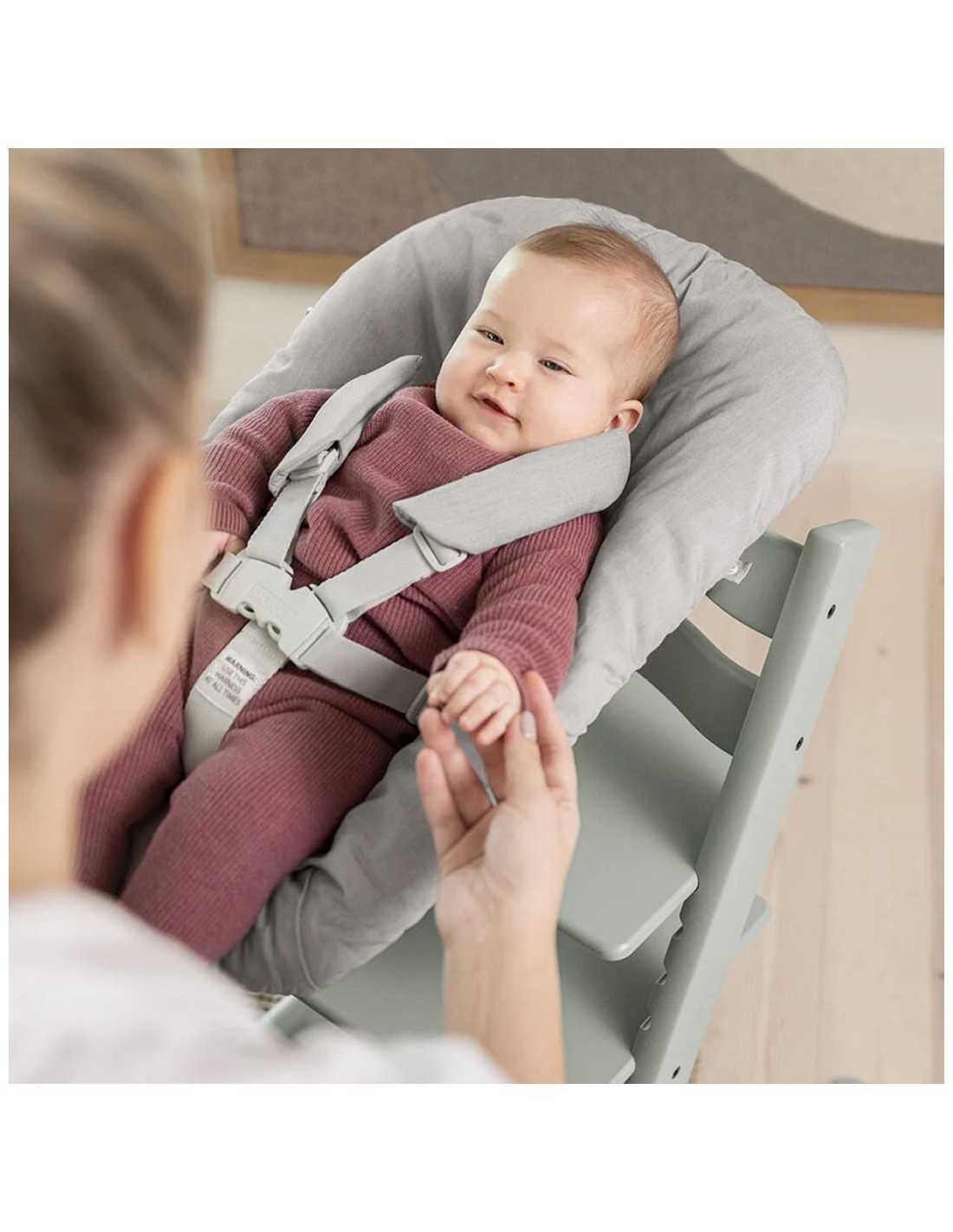 El Newborn Set permite usar la Tripp Trapp® desde el nacimiento, brindando al bebé un espacio seguro y acogedor, mientras lo acerca a la mesa familiar.