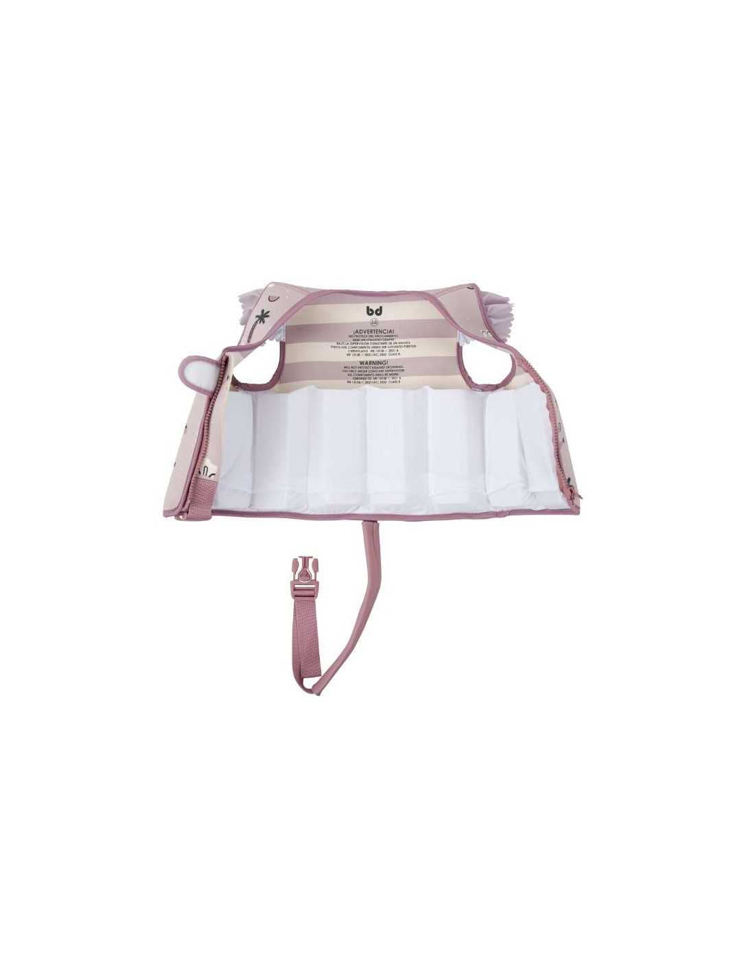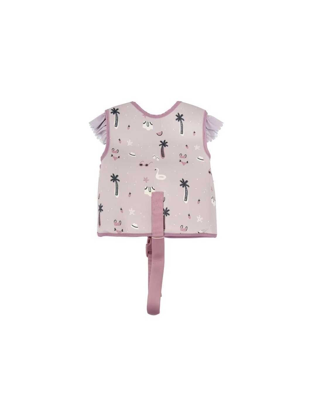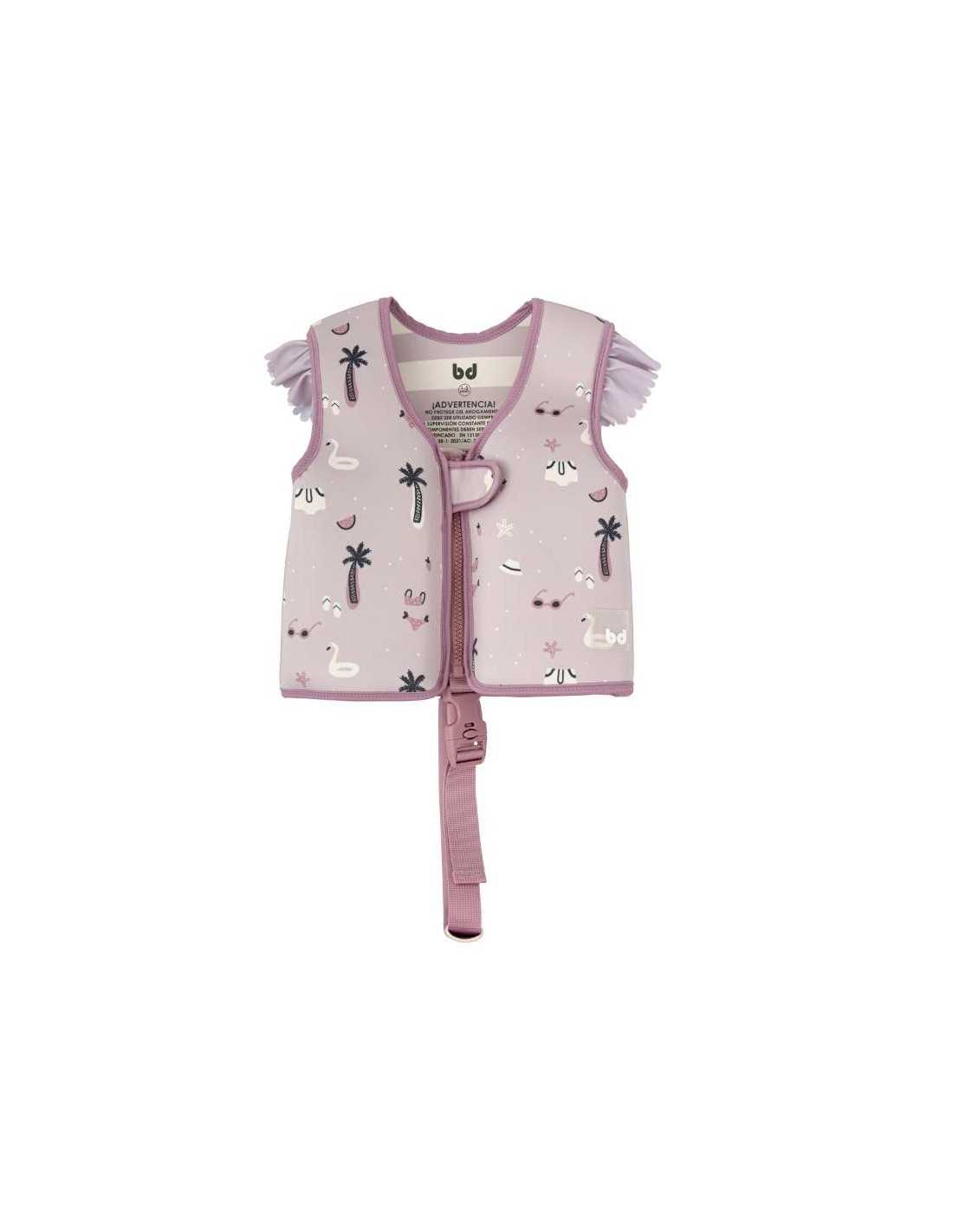 El chaleco flotador de bimbidreams tiene un estampado divertido de palmeras en tonos lila que encantará a los más pequeños.