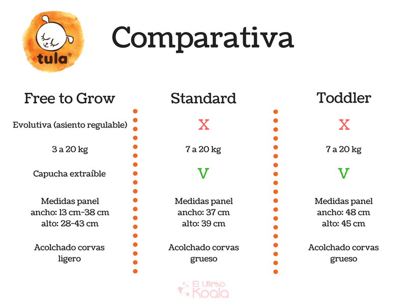 Las mochilas evolutivas cuentan con un sistema de ajuste que permite reducir el asiento y el respaldo para adaptarlo al tamaño del bebé. En el caso de las mochilas Tula Free to Grow este ajuste se realiza mediante tres corchetes en el asiento y la regulación del panel con el ajuste del tirante.
