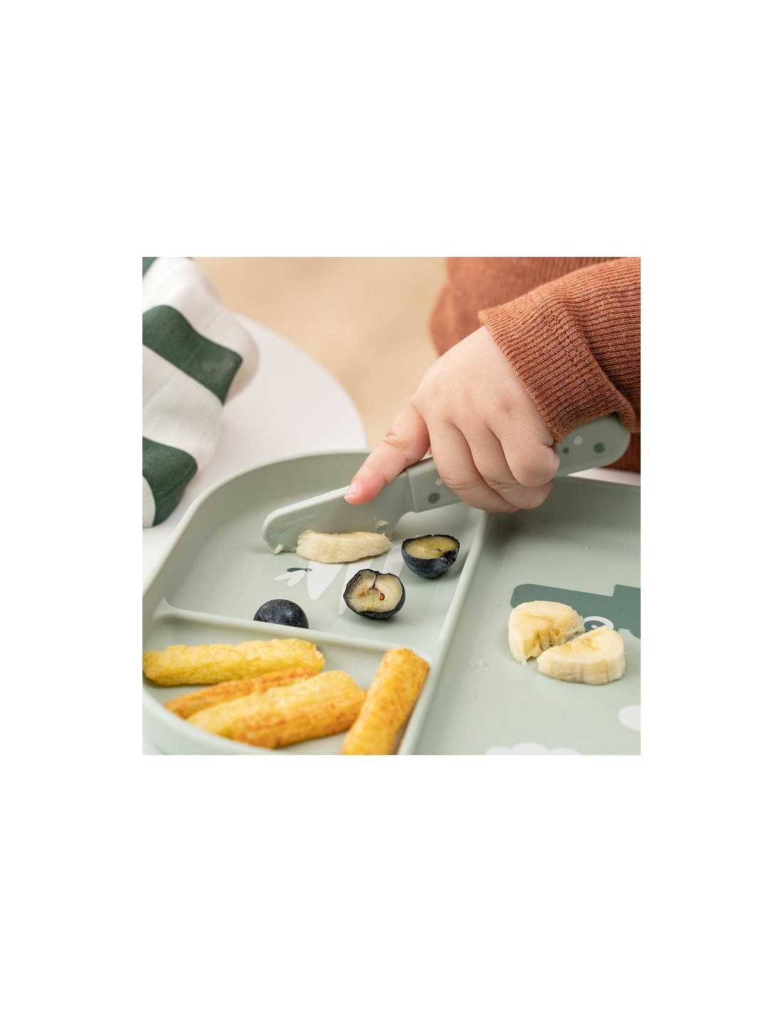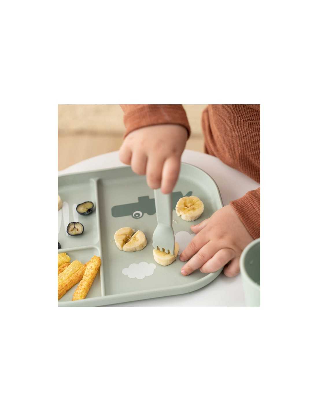 El set de cubiertos es de alta calidad y duradero, además el diseño del mango está fabricado para que sea de fácil agarre y al estar hecho de PP calidad alimenticia, son suaves y antideslizantes, para que puedan ir desarrollando la posición idónea de los dedos y aprendiendo a usar los cubiertos básicos.