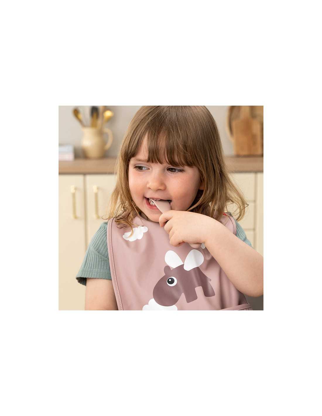Este lindo y práctico juego de cubiertos infantiles con mango antideslizante de Done By Deer es de fácil agarre para manos pequeñas con grandes ambiciones.
