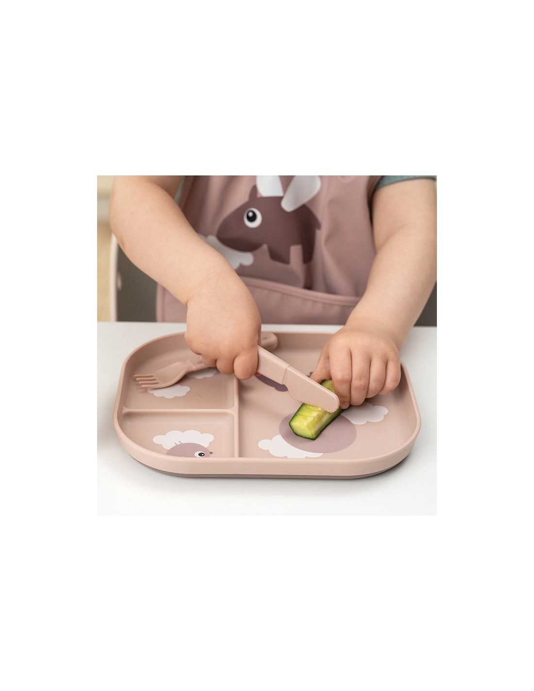 El set de cubiertos es de alta calidad y duradero, además el diseño del mango está fabricado para que sea de fácil agarre y al estar hecho de PP calidad alimenticia, son suaves y antideslizantes, para que puedan ir desarrollando la posición idónea de los dedos y aprendiendo a usar los cubiertos básicos.