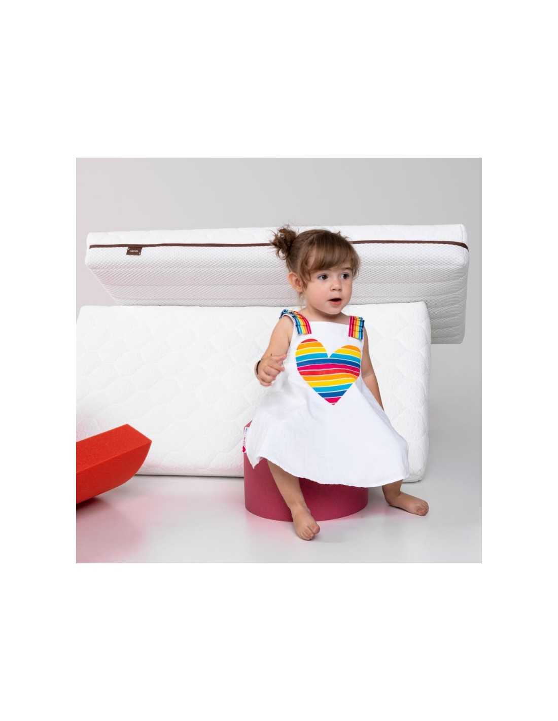 Finalmente, es un colchón cuna de doble etapa para cada época del desarrollo del bebé. Una más suave para sus primeros meses y otra más firme para una correcta alineación de la columna del bebé. La primera etapa además ayuda a reducir el riesgo de plagiocefalia.