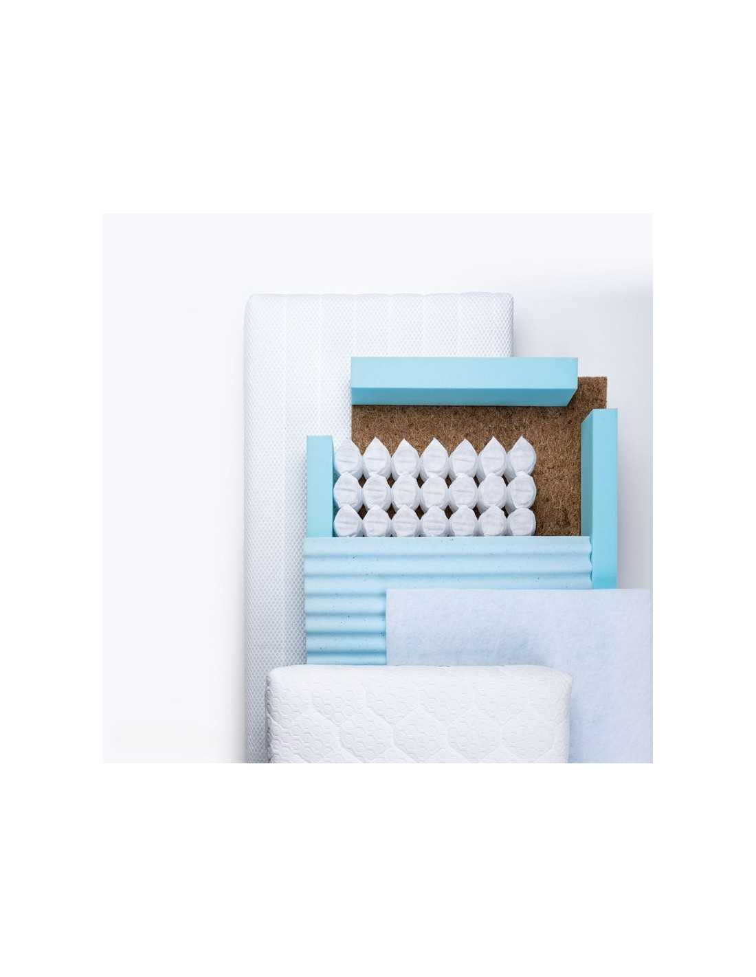 - Refuerzo perimetral : El refuerzo al hacer que los bordes del colchón sean más firmes ayudan a que le bebé se mantenga en el centro de éste mientras duerme. Además evita hundimientos no deseados del colchón evitando que el bebé quede atrapado entre el colchón y la cuna.