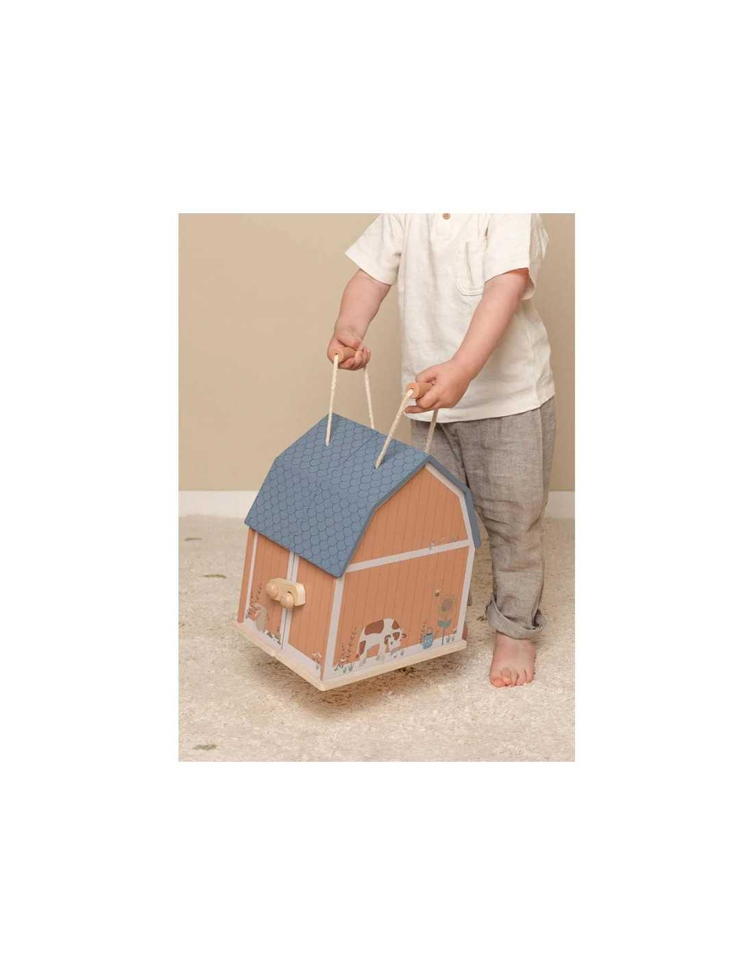Con esta casa de juegos en forma de granero, tu pequeño se divertirá mucho, Abre el establo y llegarán los animales. Con todas estas figuras de juego de madera, tu hijo puede crear su propia historia, estimulando su imaginación. Y cuando termine el tiempo de juego, simplemente guarde todas las figuras dentro de la casa de juegos, dóblela y guárdela.