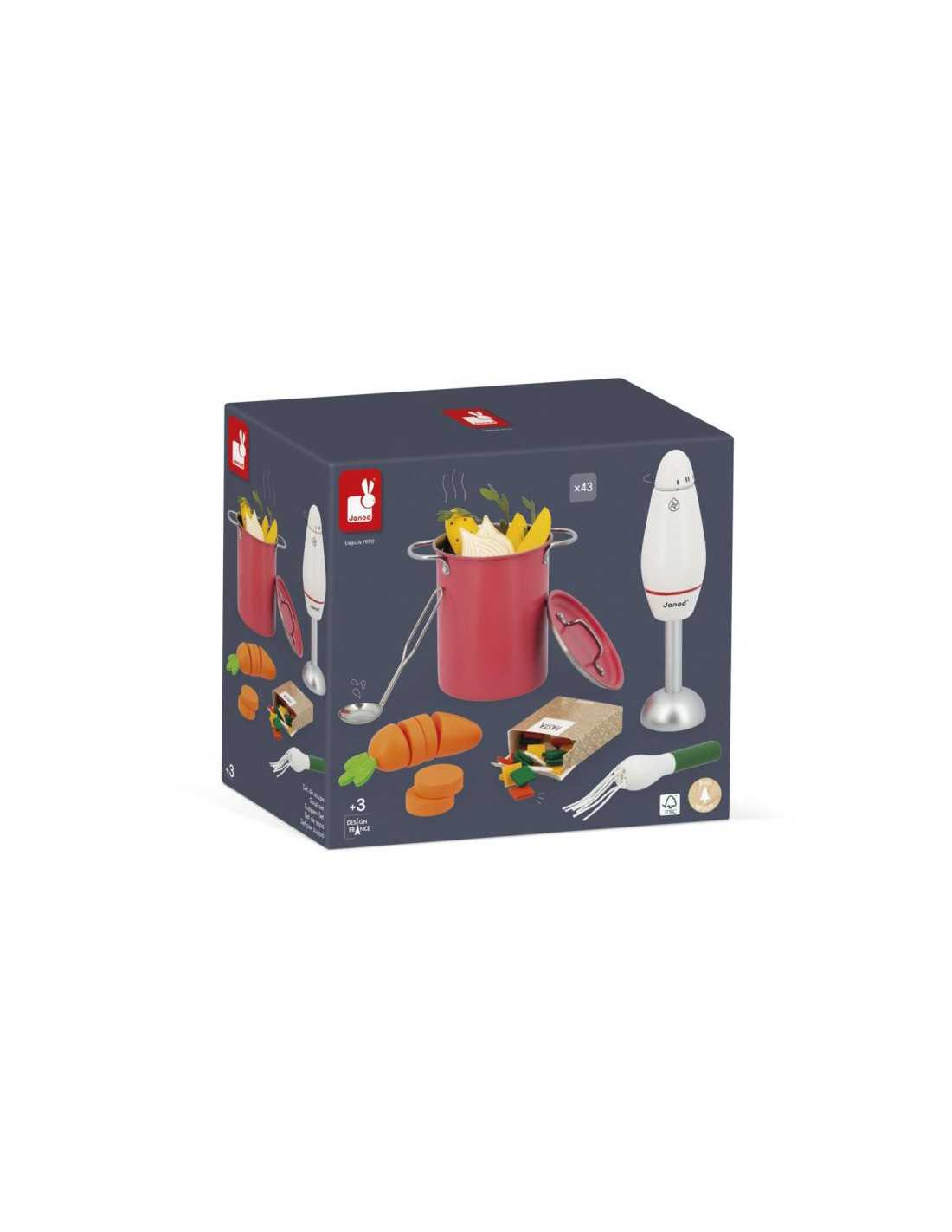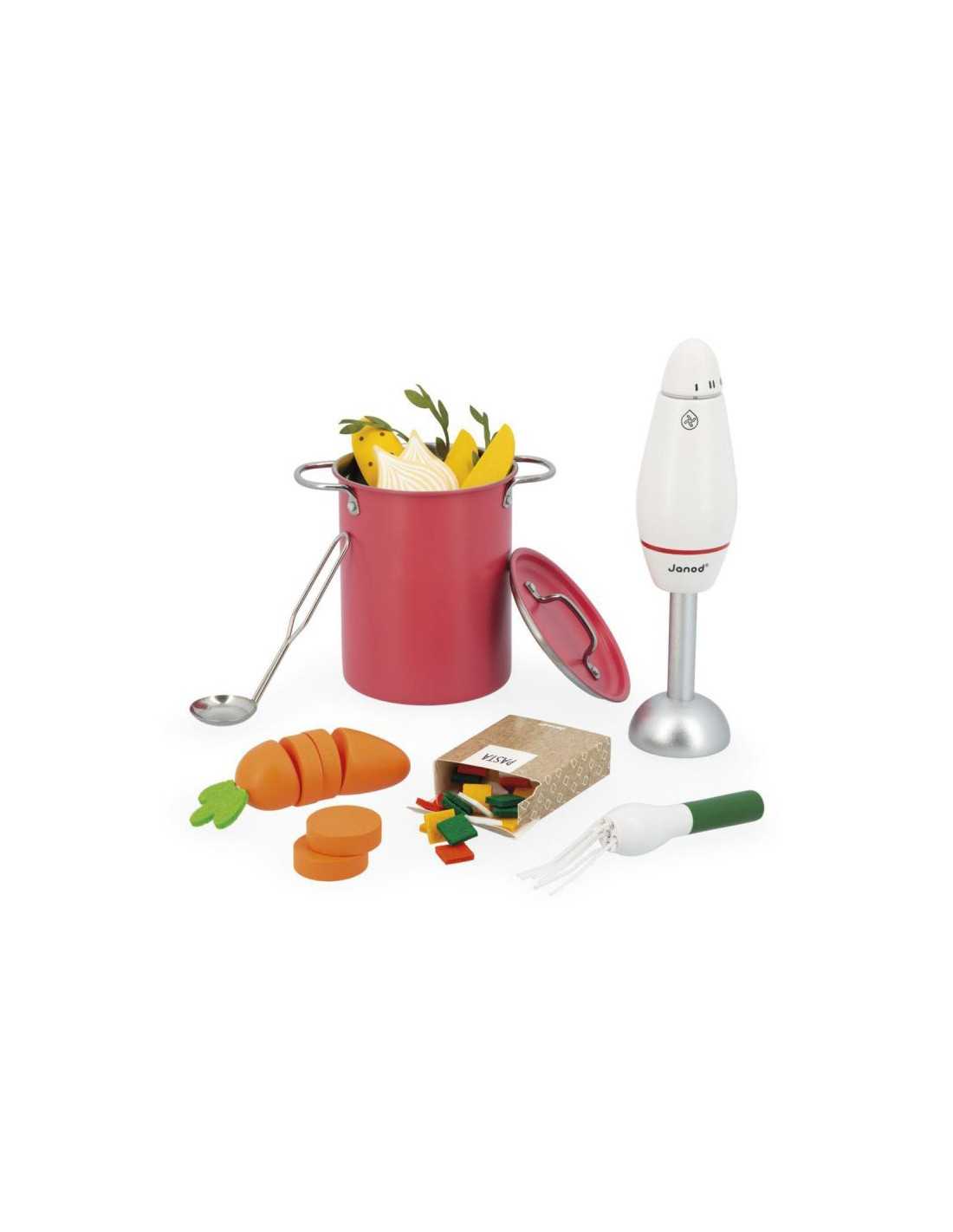 Set de sopa Janod con verduras, olla y accesorios de cocina. Juego de imitación para niños a partir de 3 años.
