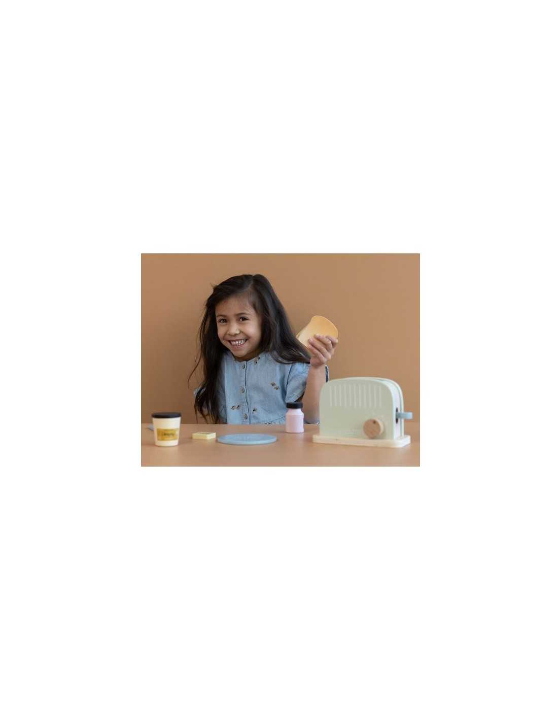 Set de tostadora de madera, con ingredientes y accesorios para jugar a preparar el desayuno, de Little Dutch.