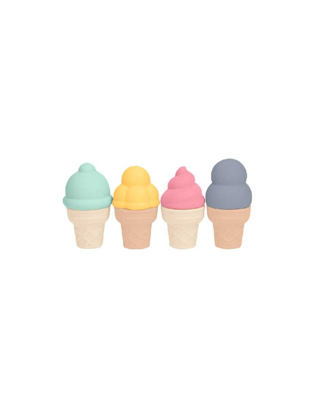 Set de helados de silicona Saro compuesto por cucurucho y bola intercambiable. Ideal para playa, arena o bañera. Estimula el juego libre y la imaginación desde edades tempranas.