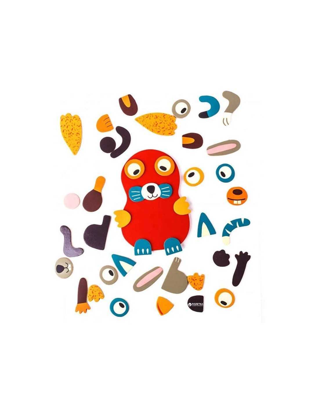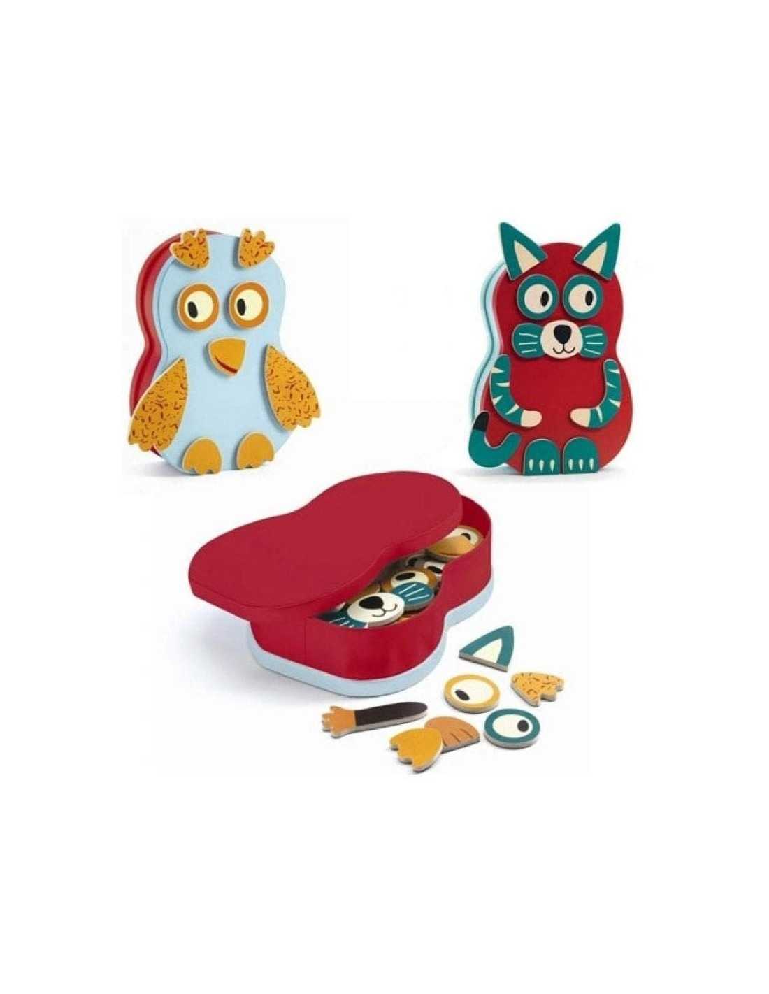 Crea animales reales o inventa los tuyos propios. Puedes crear miles de divertidos animalitos en un sólo juego. Podrás intercambiar tantos elementos como quieras y colocarlos en la caja. (Cada una de los lados de la caja corresponde a una figura distinta en la que podrás colocar las piezas). Y si te aburrés también las podrás colocar en la nevera.