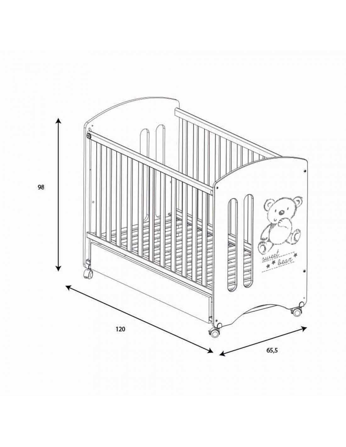 La cuna Sweet Bear Micuna tiene una medida standard de 120 x 60 cm, y está pensada para su uso desde recién nacido hasta los 3 años aproximadamente.