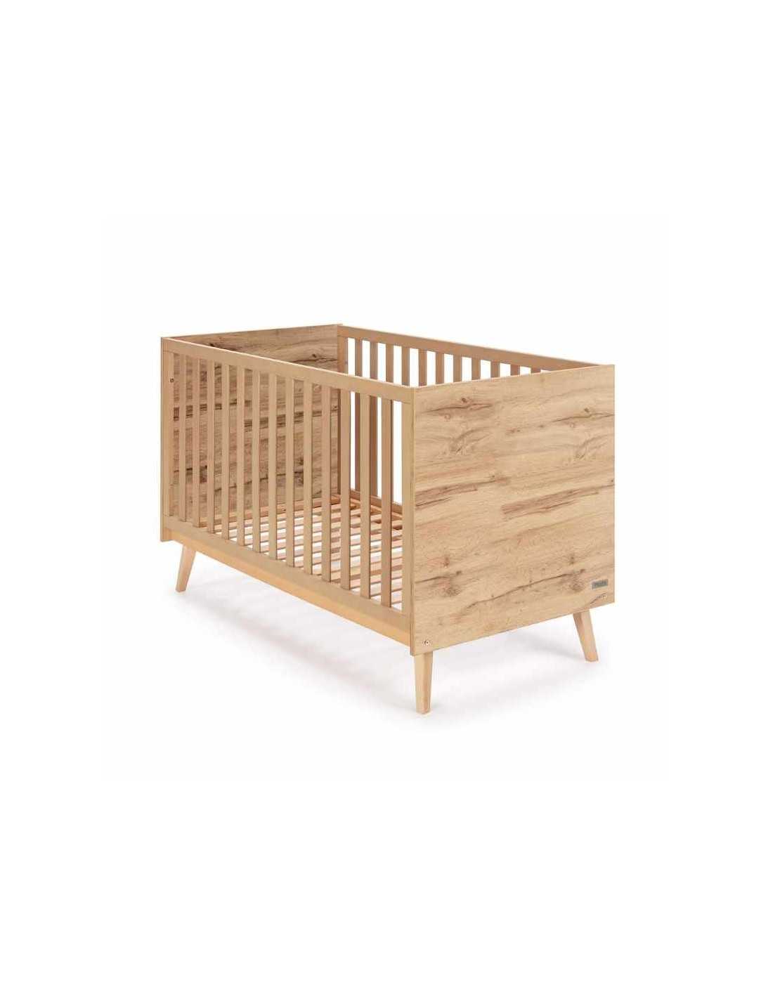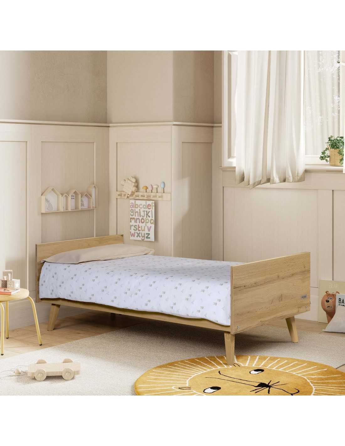 Cuna camita Big Martha de 140 x 70 cm. Es una cuna antibacteriana. Está fabricada en madera de haya natural. Pertenece a la colección Martha de Micuna. Esta cuna se puede convertir en camita. Color Roble.