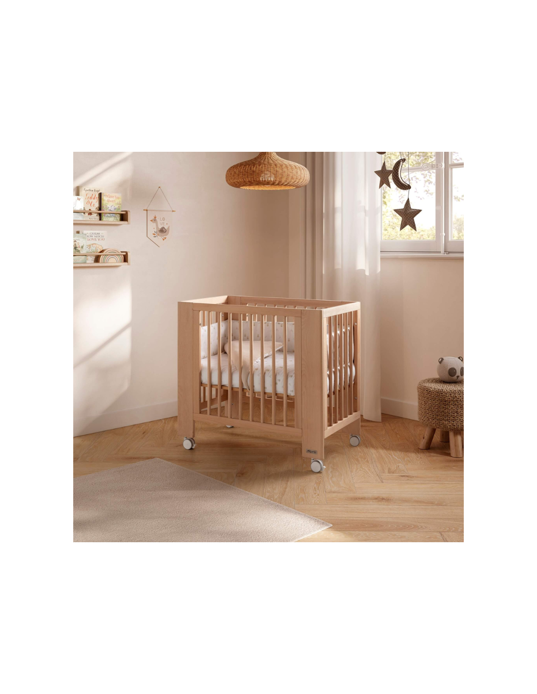 La cuna camita Swing está fabricada en madera de haya con acabado antibacteriano babybacter®micuna, pinturas al agua y barnices no tóxicos. Todas las maderas provienen de bosques gestionados de forma sostenible. Desarrollan sus diseños, producción y distribución bajo las premisas del eco-diseño. Micuna tiene un gran compromiso con la fabricación ecológica.