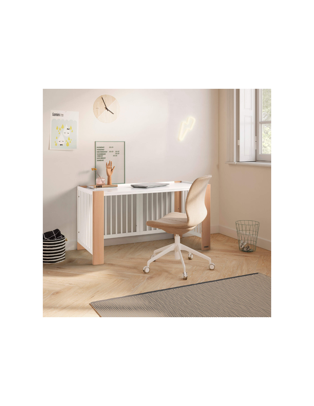 - Diseño Convertible: Con unos simples ajustes, la cuna se transforma en una cama para niño, sofá cama y hasta en un escritorio, acompañando a tu hijo en cada etapa de su crecimiento.
