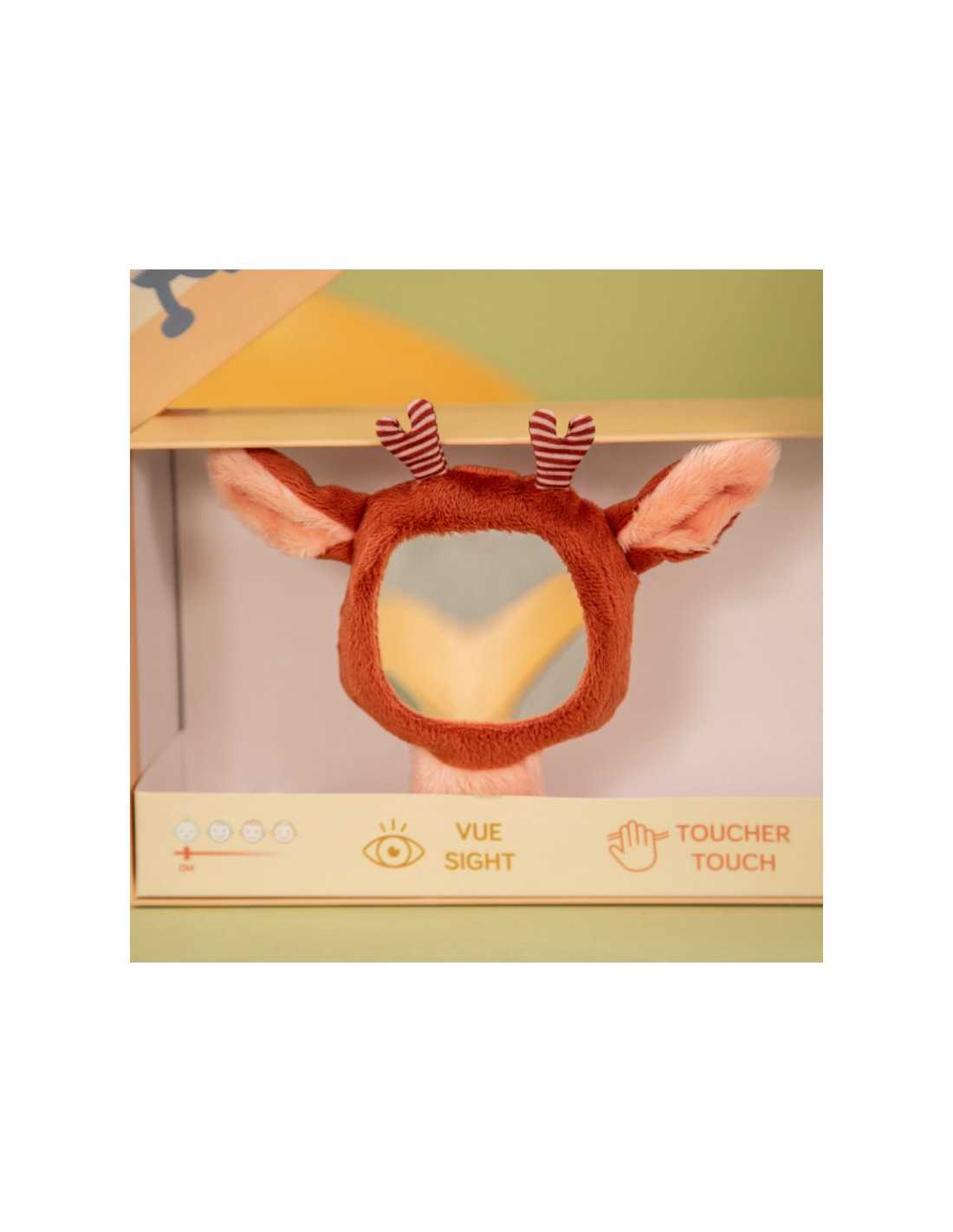 Lena el unicornio estimula el oído gracias a sus alas crujientes. Stella el cervatillo incorpora un pequeño espejo que despierta la curiosidad del bebé y estimula la vista.