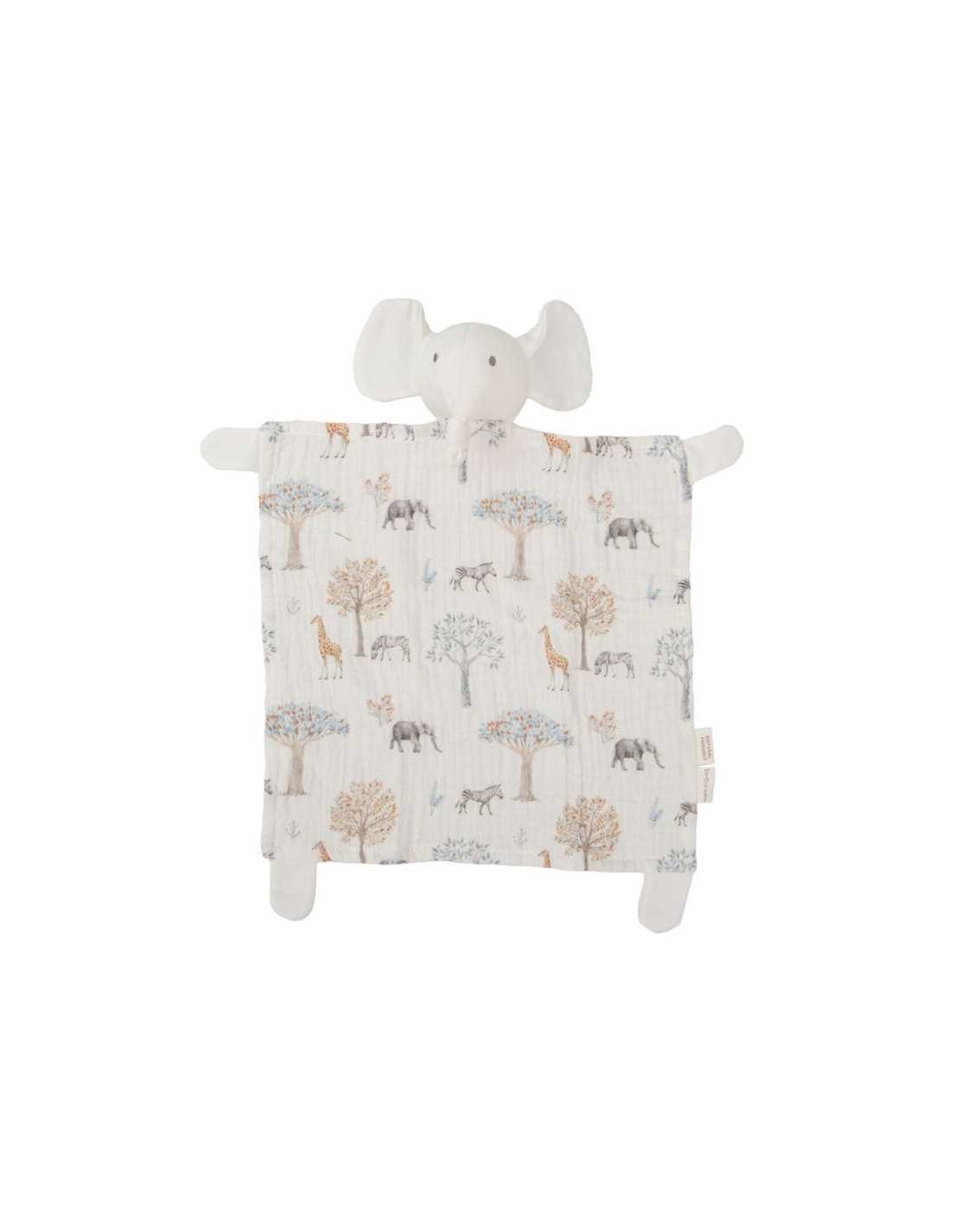 El doudou Tanzania de Bimbidreams está pensado para convertirse en ese objeto especial que acompaña al bebé en su día a día. Su formato combina un peluche suave con una mantita ligera, facilitando que el bebé lo agarre, lo manipule y lo tenga siempre cerca.