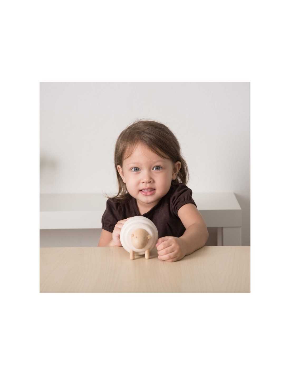 Esta ovejita encajable de PlanToys. Los niños pueden encajar el color correspondiente a la forma de una oveja, ayudándoles a aprender el color básico y la secuencia.