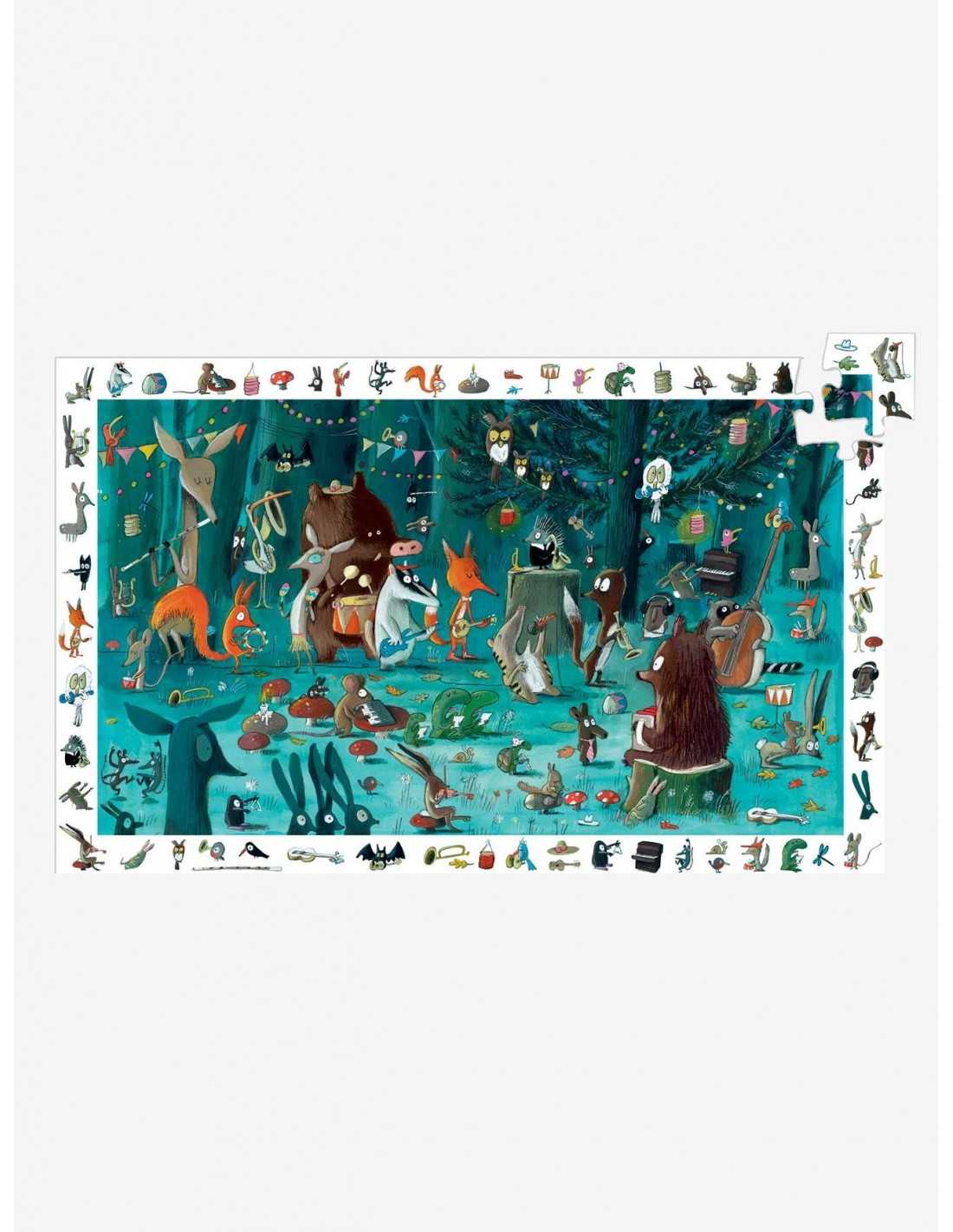 El zorro guitarrista, erizo que toca le saxofón o el piano pianista... la orquesta está lista, ¡el concierto va a empezar! Una bonita ilustración a todo color para este puzle de observación.