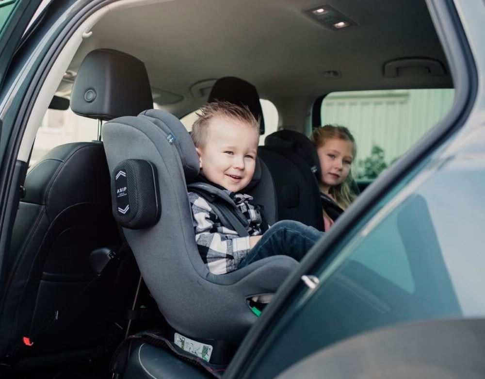 Las sillas a contramarcha de Axkid permiten que los niños viajen en esta posición hasta los 6 años o más (125 cm o 25 kg), dependiendo del modelo. Esto sigue las recomendaciones de seguridad infantil para mantener a los niños a contramarcha durante el mayor tiempo posible.