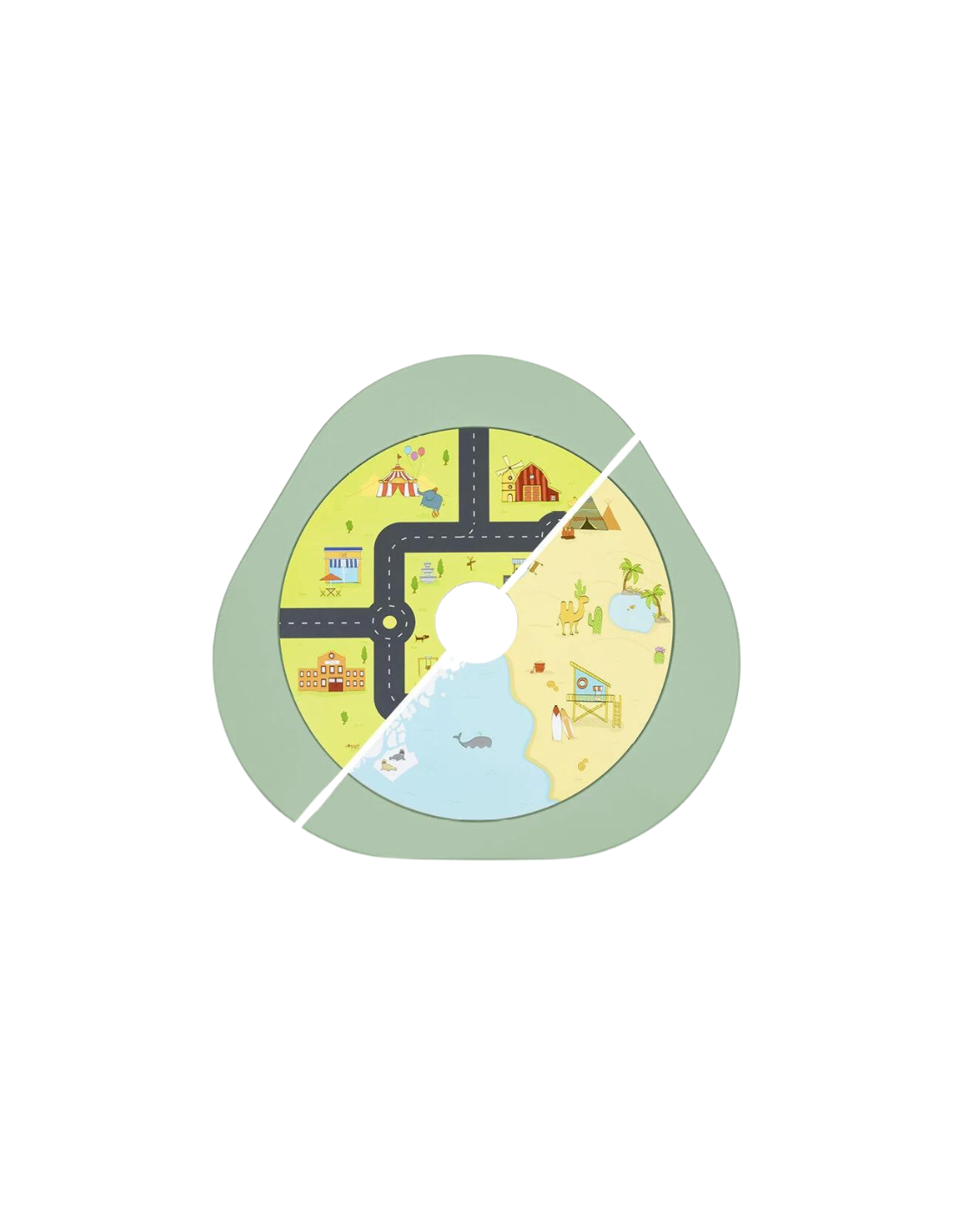 Nuestro tablero de paisaje de doble cara cuenta con un entorno para aprender en el mundo en el que vivimos y una escena urbana en el otro lado para soñar con aventuras en la ciudad.