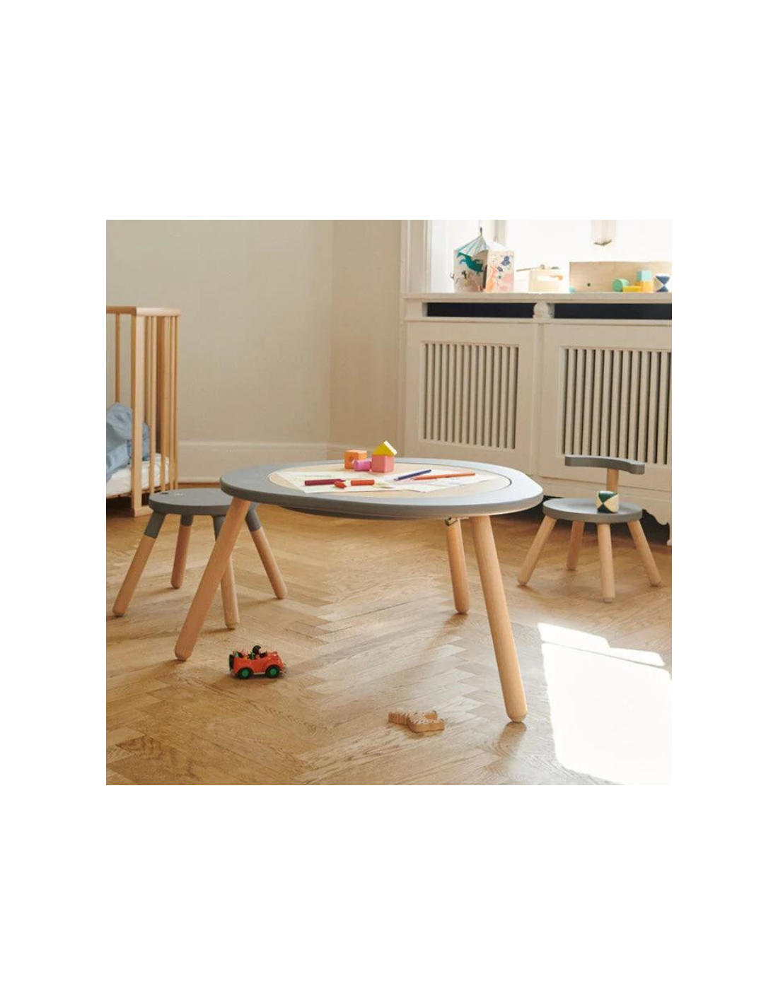 Nuestro concepto versátil de mesa de juegos se adapta al crecimiento de tu hijo, desde la etapa infantil hasta la preescolar y más allá. La mesa Stokke MuTable incluye extensiones de patas que, literalmente, elevan el tiempo de juego a nuevas alturas.