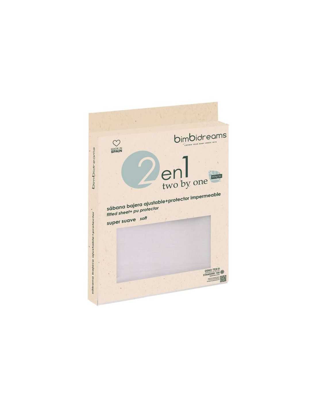 Sábana Bimbidreams 2 en 1: Bajera ajustable y protector impermeable. Es una solución perfecta para proteger el colchón del peque, está fabricado en Tencel 100% impermeable y transpirable, hipoalergénica, con función termoreguladora y protección antimicrobiana de larga duración.