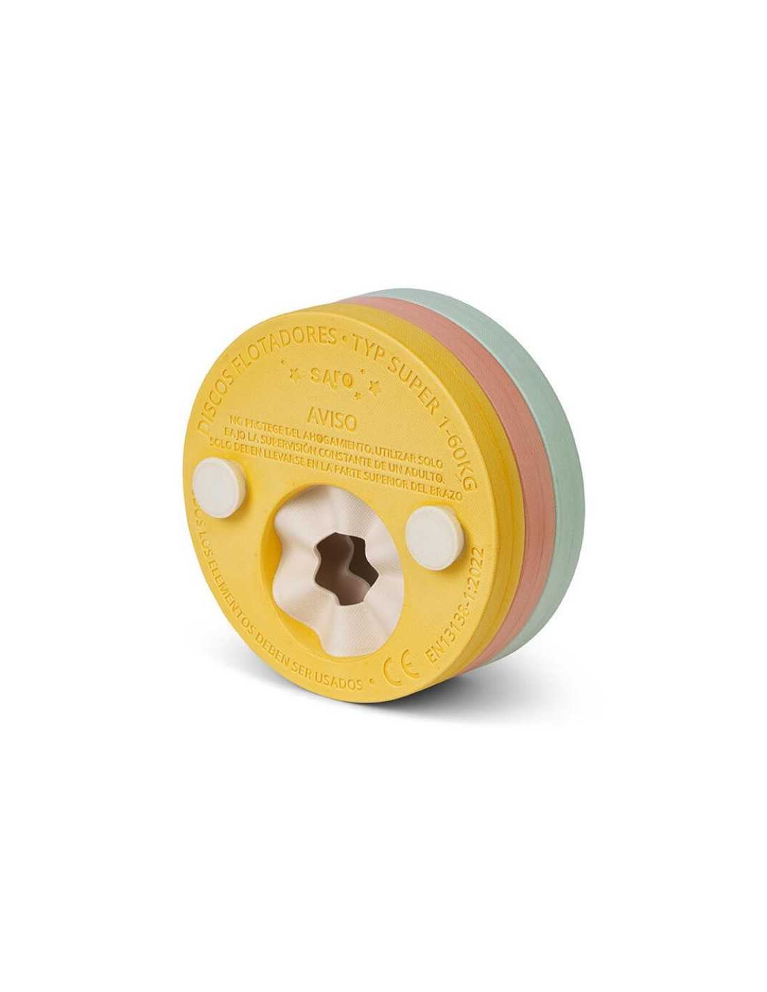 Manguitos baño evolutivos de Saro, disponibles en colores Azul Mist y Blossom. Diseño sin inflado, más seguros y resistentes al cloro y al agua salada. Ideales para niños de 12 meses a 12 años.